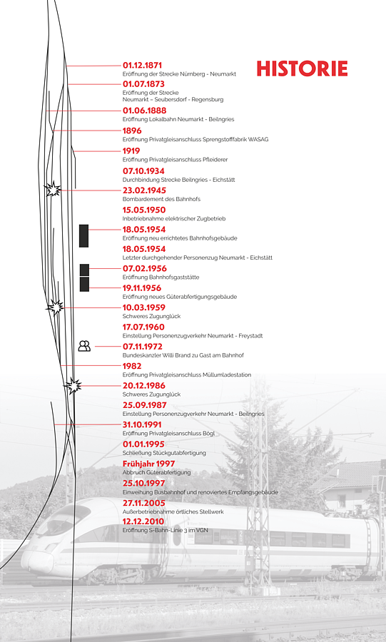 und der jeweiligen StadtAusstellung „150 Jahre Bahnhof Neumarkt“
