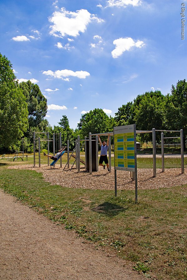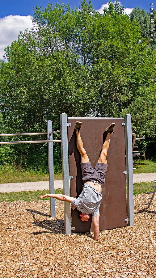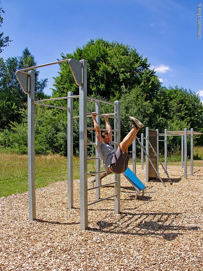 Calisthenics, also das Training mit dem körpereigenen Gewicht, wird immer beliebter. In Neumarkt gibt es jetzt sogar zwei Anlagen: am Waldspielplatz in der Wolfsteinstraße und im LGS-Park nahe des Emil-Silberhorn-Spielplatzes. Beide Anlagen sind mit vielen Geräten und Betätigungsmöglichkeiten ausgestattet und ermöglichen zu jeder Tages- und Jahreszeit kostenlose sportliche Übungen. Beide Einrichtungen wurden von der Stadt Neumarkt angelegt. Ganz neu ist die Übungsstrecke im weitläufigen Gelände des früheren Parks der Landesgartenschau. Dort sind in einem Bereich von rund 90 Metern Länge und 10 Metern Breite zehn Übungsstationen aufgebaut. Unabhängig von Alter oder Fitness-Level findet jeder die für ihn passenden Geräte und Übungen. Auf Tafeln sind jeweils ausführliche Erläuterungen angebracht. So bekommt man durch die Beschreibungen – oder einfach das Ausprobieren – schnell heraus, welche Übungen man auf dem Gerät machen kann. So kann man gleichzeitig Spaß haben und etwas für die Gesundheit tun!