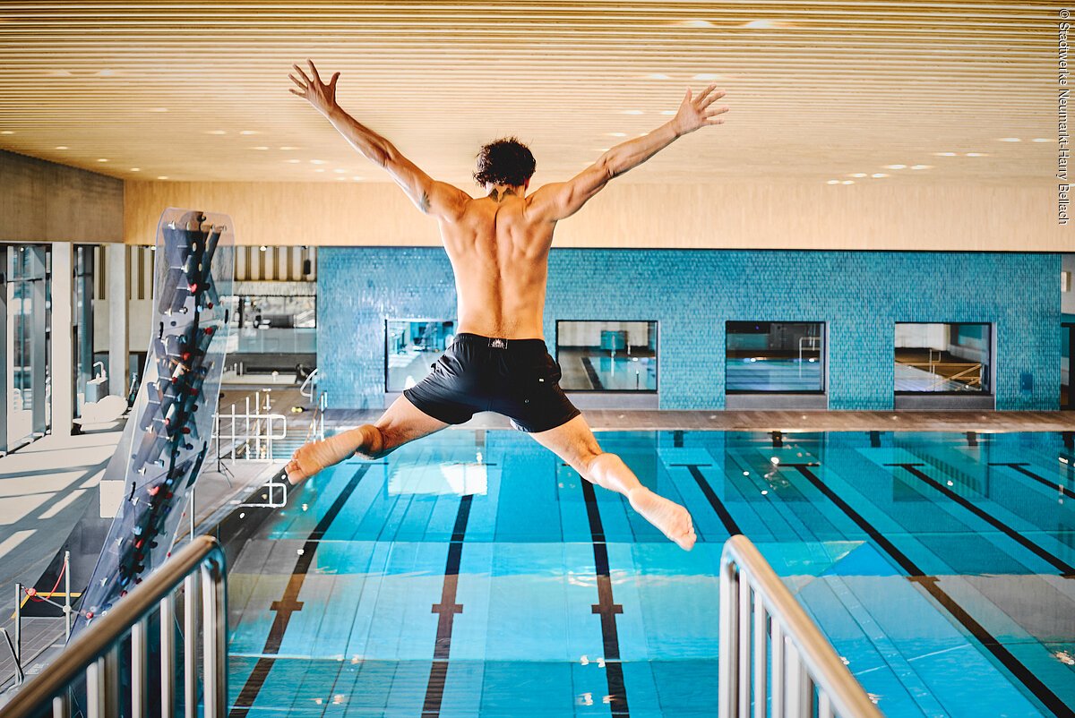 Mit einer Wasserfläche im Freigelände von über 2000 qm und Liegewiesen setzt das Schlossbad in der Region neue Maßstäbe. Neumarkts Bad unter freiem Himmel mit Sprungturmanlage, Rutsche und vielem mehr. Seit 2022 können sich die Kinder über das neue Kinderbecken mit Breitrutsche im Becken sowie einem Schiffchenkanal mit drei Staustufen und vielen weiteren Attraktionen freuen! Das Freibad ist täglich geöffnet von 08:00 - 20:00 Uhr.