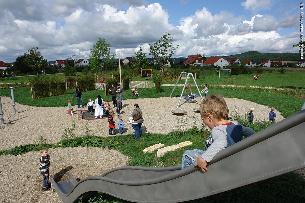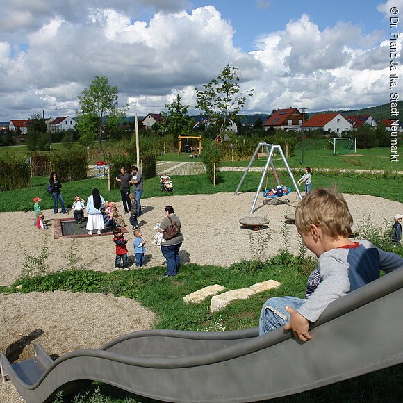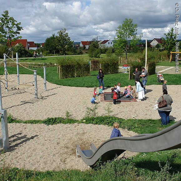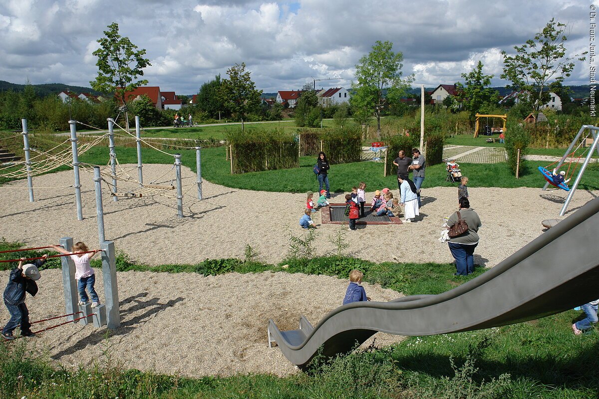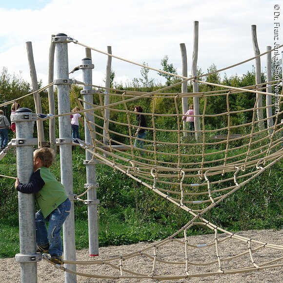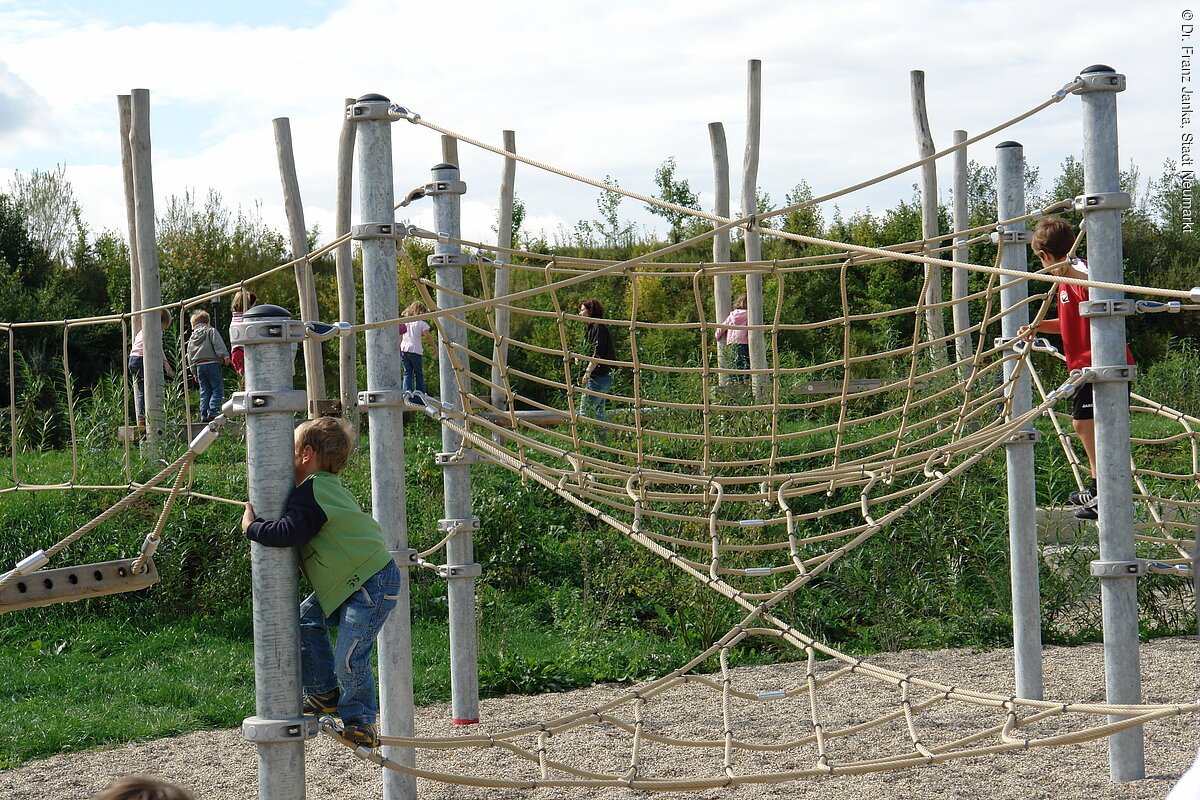 Unter Beteiligung der ortsansässigen Kinder wurde dieser schöne Spielplatz entworfen und im Jahre 2008 fertiggestellt. Das Thema Dschungel wurde durch Erdmodellierung, Bepflanzung und Geräteauswahl gefühlvoll umgesetzt. Mittlerweiel ist der Spielplatz über den Stadtteil Pölling hinaus bekannt und beliebt. Die Kinder können hier eintauchen in eine Abenteuerwelt aus Hügeln, Tälern und Weidenlabyrinthen. Auf dem Spielplatz Seewiesen soll es sogar Krokodile geben....