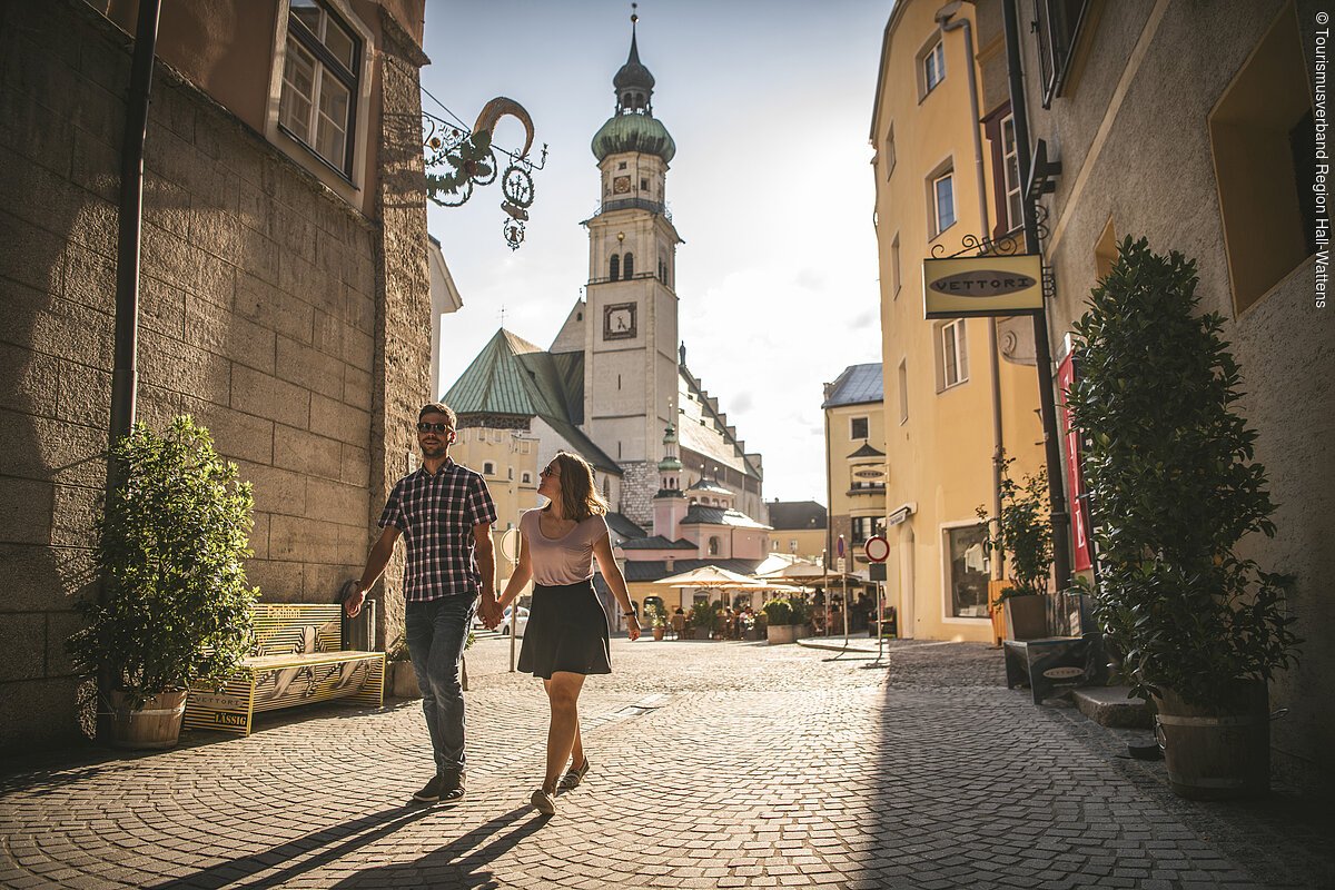 Die geschmackvollen Bauten der Haller Altstadt zeugen von der Vergangenheit als wohlhabende Stadt: Hall wurde im Mittelalter durch die Salzgewinnung zum bedeutendsten Wirtschaftsplatz Nordtirols. Die Stadt war bereits im Mittelalter ein wichtiger Warenumschlagsplatz für den Handel auf dem Inn, die landesfürstliche Münzstätte, die ab Mitte des 15. Jahrhunderts in Hall angesiedelt war, trug wesentlich zum weiteren wirtschaftlichen Aufschwung bei. Aus dem Haller Taler (Guldiner genannt) entwickelte sich das weltweite Geldwesen wie der amerikanische Dollar oder auch der chinesische Yuan. Heute ist Hall eine pulsierende Kleinstadt voller Lebensfreude, in der man abwechslungsreiche Einkaufsmöglichkeiten und stilvolle Gastlichkeit zwischen geschichtsträchtigen Mauern erleben kann.