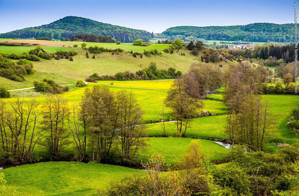 Im Regionalpark Quellenreich kannst du mit allen Sinnen die Schönheiten der sanft-lieblichen Landschaft zwischen Neumarkt und Pilsach, Velburg und Lauterhofen entdecken. Namensgebend für den Regionalpark im Landkreis Neumarkt sind die zahlreichen Quellen in der sonst wasserarmen, aber attraktiven Karstlandschaft. Die Quellen der Region speisen zum Beispiel die Schwarze Laber und die Lauterach. Der Name „Quellenreich“ steht aber im übertragenen Sinn auch für die Bedeutung der Region als Quelle von Inspiration, Genuss und Erlebnis. Die typische Karstlandschaft mit ihren vielen Quellen ist ein einzigartiger Natur-Erlebnisraum. Zu den landschaftlichen Besonderheiten des Regionalparks Quellenreich gehören unter anderem die renaturierte Quelle der Schwarzen Laber, das geheimnisvolle Deusmauer Moor, der felsdurchsetzte, artenreiche Schanzberg bei Oberwiesenacker und die mystische König-Otto-Tropfsteinhöhle in St. Colomann bei Velburg. Du entdeckst die Schönheiten der urtümlichen Landschaft am besten per Fahrrad auf der Regionalpark-Radroute. Die große Rundtour mit insgesamt 65 Kilometern, teilbar in drei kleinere Schlaufen mit 22 bis 30 Kilometer Länge, beginnt am Neumarkter Bahnhof und verläuft bis auf wenige Ausnahmen familiengerecht abseits von Straßen oder auf straßenbegleitenden Radwegen. Bewaldete Dolomitkuppen, markante Felsen, sonnige Wacholderwiesen und verschlungene Bachläufe werden dich unterwegs immer wieder begeistern!