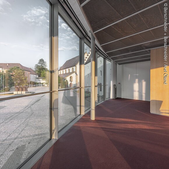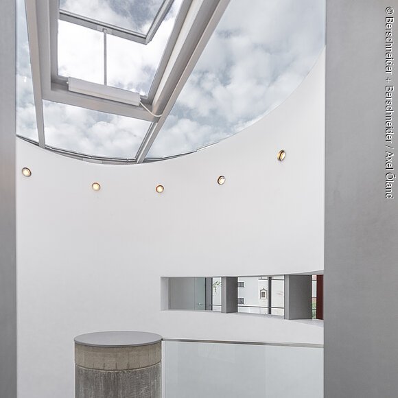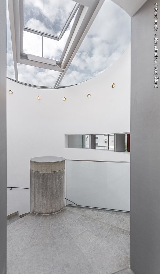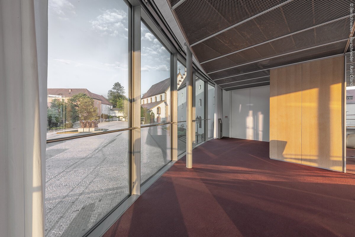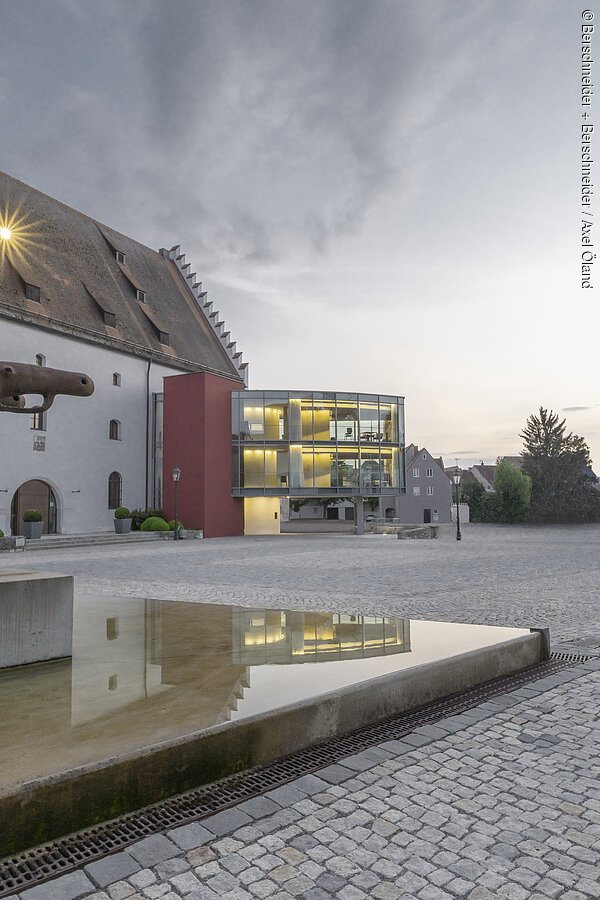 Der Historische Reitstadel, einstiges Zeughaus der Pfalzgrafen aus dem 15. Jahrhundert, im Zweiten Weltkrieg zerstört und 1980/81 wiederaufgebaut, ist Neumarkts berühmter Konzertsaal und Musentempel am Residenzplatz und bildet zusammen mit dem Pfalzgrafenschloss, der Hofkirche und der Krümperstallung ein Ensemble von großer historischer Bedeutung. Um Platz für Künstlergarderoben und Proberäume zu schaffen, brauchte das historische Gebäude einen Erweiterungsbau. Nur: wie? Bewusst wählten die Architekten Berschneider + Knychalla einen klaren Kontrapunkt mit einer technisch anmutenden, leichten Glasfassade. Das alte Treppenhaus wurde in den modernen Neubau integriert, der über dem Residenzplatz zu schweben scheint und das historische Ambiente in den Glasscheiben spiegelt.