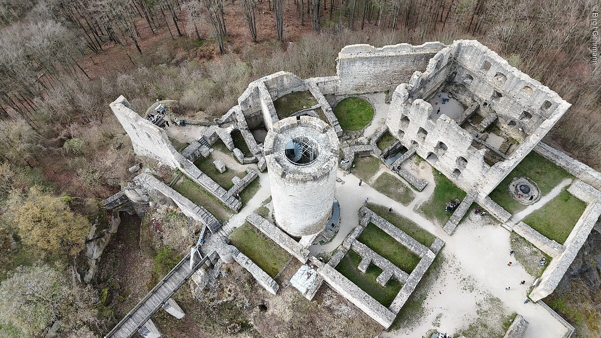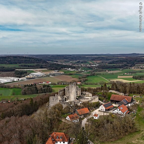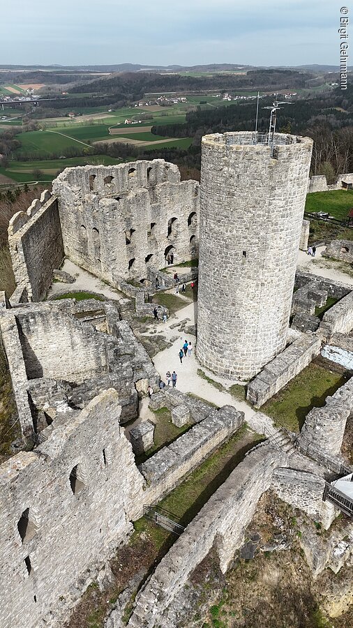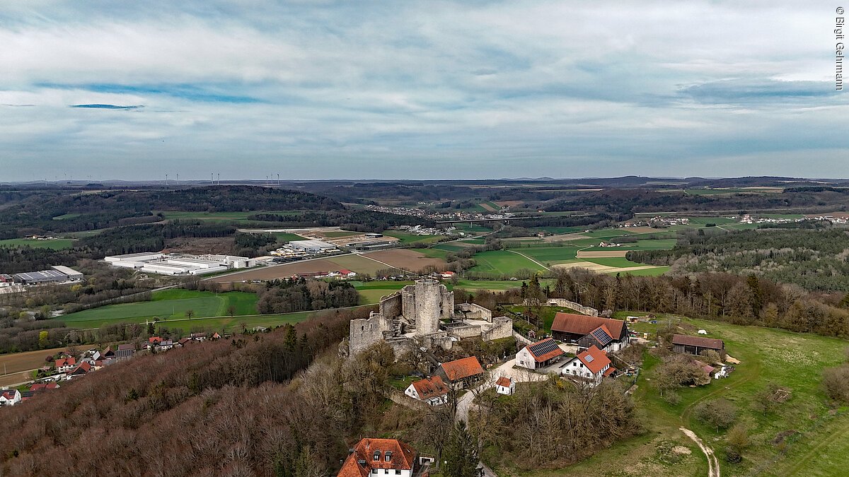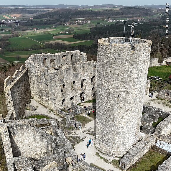 Die Burgruine Wolfstein, auf der höchsten Stelle des Wolfsteinberges (588m ü NN), ist das weithin sichtbare Wahrzeichen der Stadt Neumarkt i.d.OPf. Sie diente als Wehr- und Wohnanlage und besteht aus einer Vor- und einer Hauptburg. Das markanteste Bauwerk bildet der Turm „Bergfried“ genannt. Er war als Beobachtungsbastion und letzter Rückzugsort bei feindlichen Angriffen gedacht. Er diente ebenso als Gefängnis und misst eine Höhe von 22m. Die Burg wurde erstmals im Jahre 1120 urkundlich erwähnt und voraussichtlich im 11. Jh. erbaut. Im Jahr 2020 ist zum 900 jährigen Jubiläum ein Burgfest geplant. Dieses wird organisiert von dem Verein der Wolfsteinfreunde Neumarkt e.V. An der Burg interessierte Bürger der Stadt Neumarkt gründeten 1997 diesen Verein mit dem Ziel, die Burg von Schutt weitgehend freizulegen und Mauern zu sanieren.