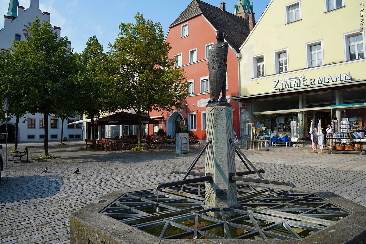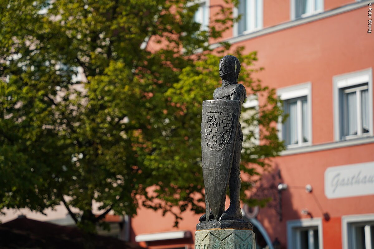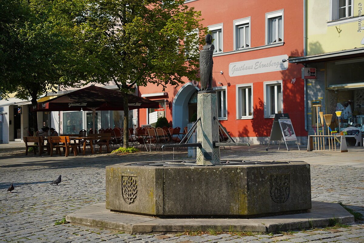 In der heutigen Ausgabe möchte ich sie gerne auf den Unteren Markt mitnehmen. Blickt man vom Rathaus auf das Untere Tor, befindet sich direkt vor dem Restaurant Pepe der Pfalzgraf-Johann-Brunnen. Der Brunnen wurde von meinem Großonkel Franz Maurer angefertigt, der 1938 im oberbayerischen Reichertshofen geboren wurde und wie Lothar Fischer an der Akademie der Bildenden Künste in München studierte. Franz Maurer kam jedoch erst einige Jahre nach Lothar Fischer nach München, sodass die beiden nie persönlich aufeinandertrafen. Der Pfalzgraf-Johann-Brunnen entstand 1989 und wurde aus Stein gefertigt. Als Vorbild diente dabei das Motiv einer alten Postkarte, auf der der Untere Markt um die Mitte des 19. Jahrhunderts abgebildet war. Dort war zu sehen, dass hier bereits damals ein Steinbrunnen gestanden hatte, an welchem er sich im Schaffensprozess orientierte. Auf der Mittelsäule des heutigen Brunnens steht eine Bronzefigur des ersten Pfalzgrafen unserer Stadt, Johann I. Sie erinnert an dessen Bedeutung für die Stadt Neumarkt, der sie Anfang des 15. Jahrhunderts durch die Verlegung seines Regierungssitzes zur Residenzstadt machte und Neumarkt so zu Ansehen und Wohlstand verhalf. Die Figur ist jedoch bewusst zurückhaltend gestaltet, da nicht die Idee eines Denkmals im Vordergrund stand, sondern die Bestrebung den Stockbrunnen nach historischem Vorbild zu schaffen. Um den Anblick der Säule mit ihrer Statue für das Auge so angenehm wie möglich werden zu lassen, wurden die beiden Elemente im Goldenen Schnitt zueinander angefertigt. Auf vier der acht Wangen des Brunnenbeckens sind Wappen mit Bezügen zur Stadt Neumarkt zu sehen. Das Stadtwappen befindet sich auf der Seite des Rathauses, das Landkreiswappen ist in Richtung des Landratsamtes angebracht. Die Wappen der Städte Mistelbach in Österreich und Issoire in Frankreich, symbolisieren die beiden Partnerstädte Neumarkts. Franz Maurer verstarb leider wenige Jahre nach der Fertigstellung des Pfalzgraf-Johann-Brunnens 1993 bei einem Kletterunfall im Dachsteingebirge. Möchte man jedoch seinen Spuren in Neumarkt weiter Folgen, so bietet sich bei schönem Wetter ein Besuch im Biergarten der Brauerei Gloßner an. 2014 wurde dort ein Steinbrunnen seines Lehrlings Christoph Mayer, der „Quellstein Regenbogenfuß“, aufgestellt. Er stellt den Anfang eines gerade entstandenen Regenbogens dar und ist mit einer Vielzahl an Symbolen, die die verschiedensten Facetten der Schöpfung darstellen, ausgestattet, die nur darauf warten bei einer Erfrischung entdeckt zu werden.