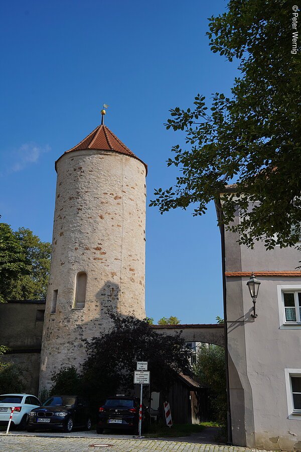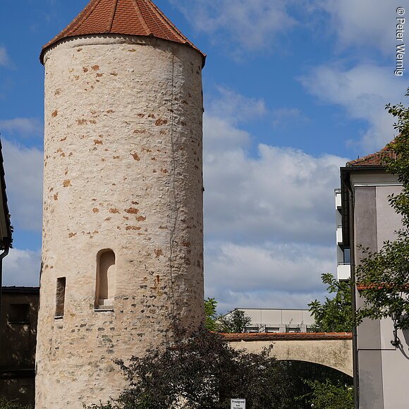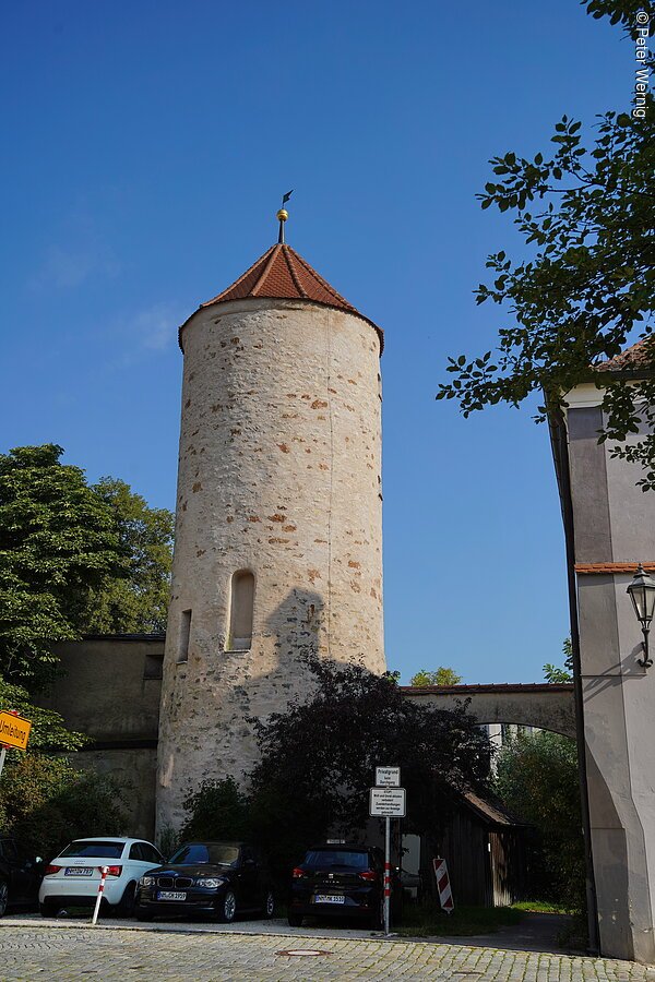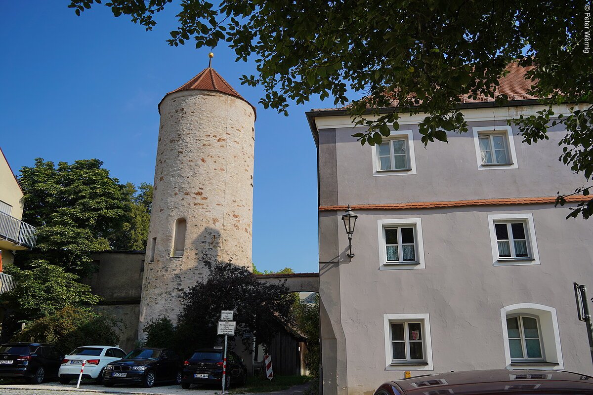 Der Schuldturm in der Unteren Kaserngasse 5 ist ein Teil der mittelalterlichen Stadtbefestigung. In dem schmucken Rundturm mit Kegeldach war zeitweilig das Stadtgefängnis untergebracht – daher der Name. Bei der Bombardierung Neumarkts im Zweiten Weltkrieg wurde der Turm 1945 schwer beschädigt und später original und zeitgetreu wiederaufgebaut. Als einer von vier noch existierenden Stadttürmen aus dem Mittelalter ist der Schuldturm im Kasernenviertel ein wichtiger Bestandteil des historischen Stadtbilds.