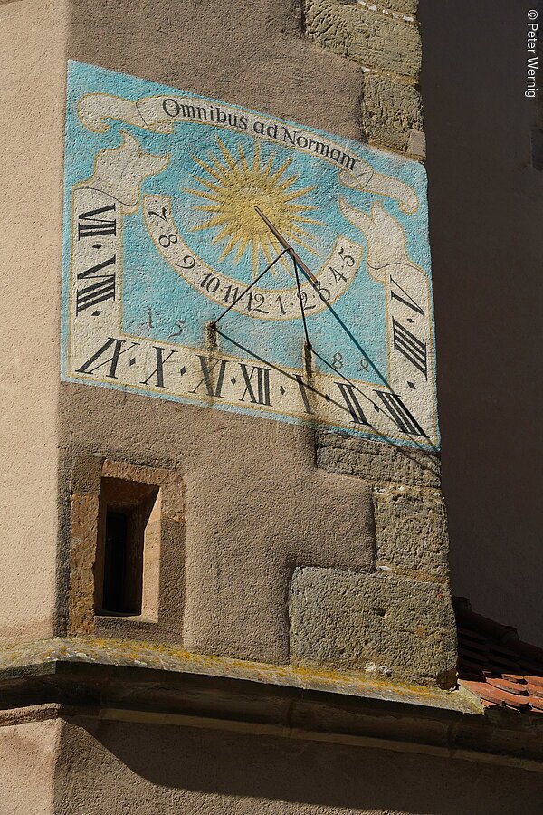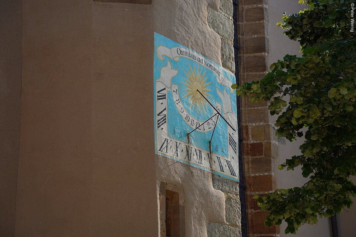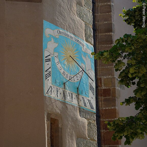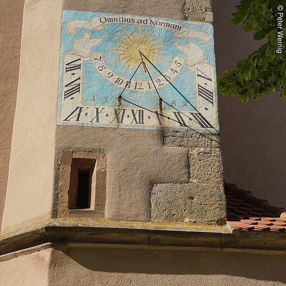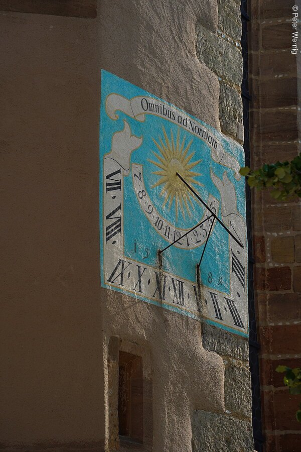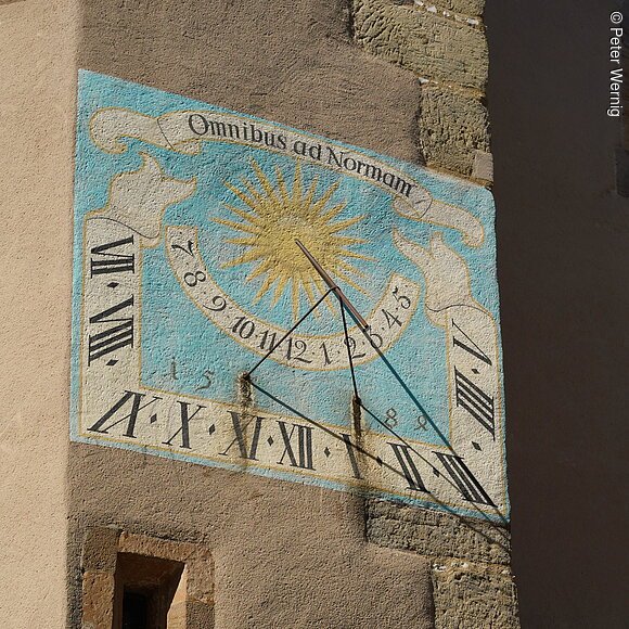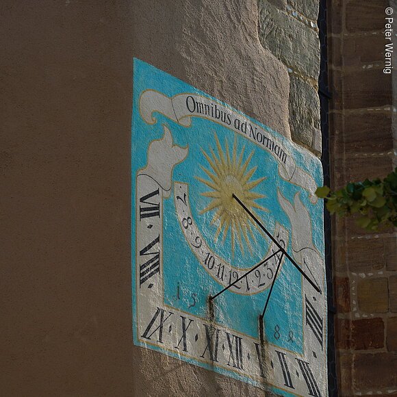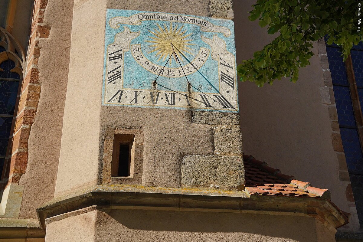 An der Südwestecke des Münsters St. Johannes befindet sich eine auf das Mauerwerk gemalte Sonnenuhr, die der Nürnberger Maler Basilius Held 1584 im Stil der Renaissance schuf. Die in zarten Farben gemalte Uhr trägt den Schriftzug „Omnibus ad normam", was so viel bedeutet wie „Alles mit rechtem Maß“.