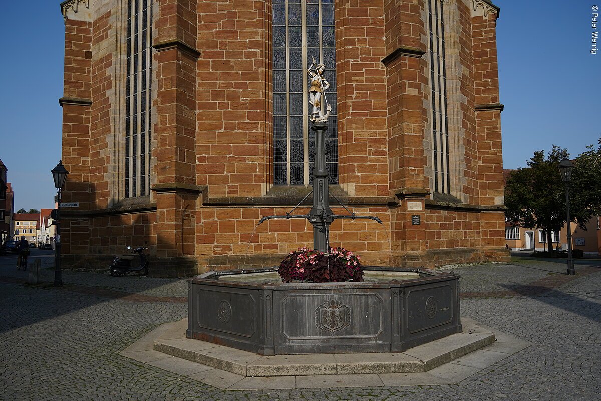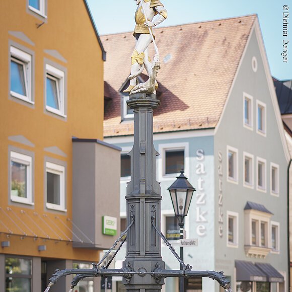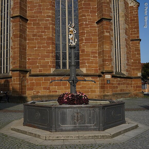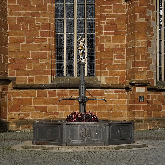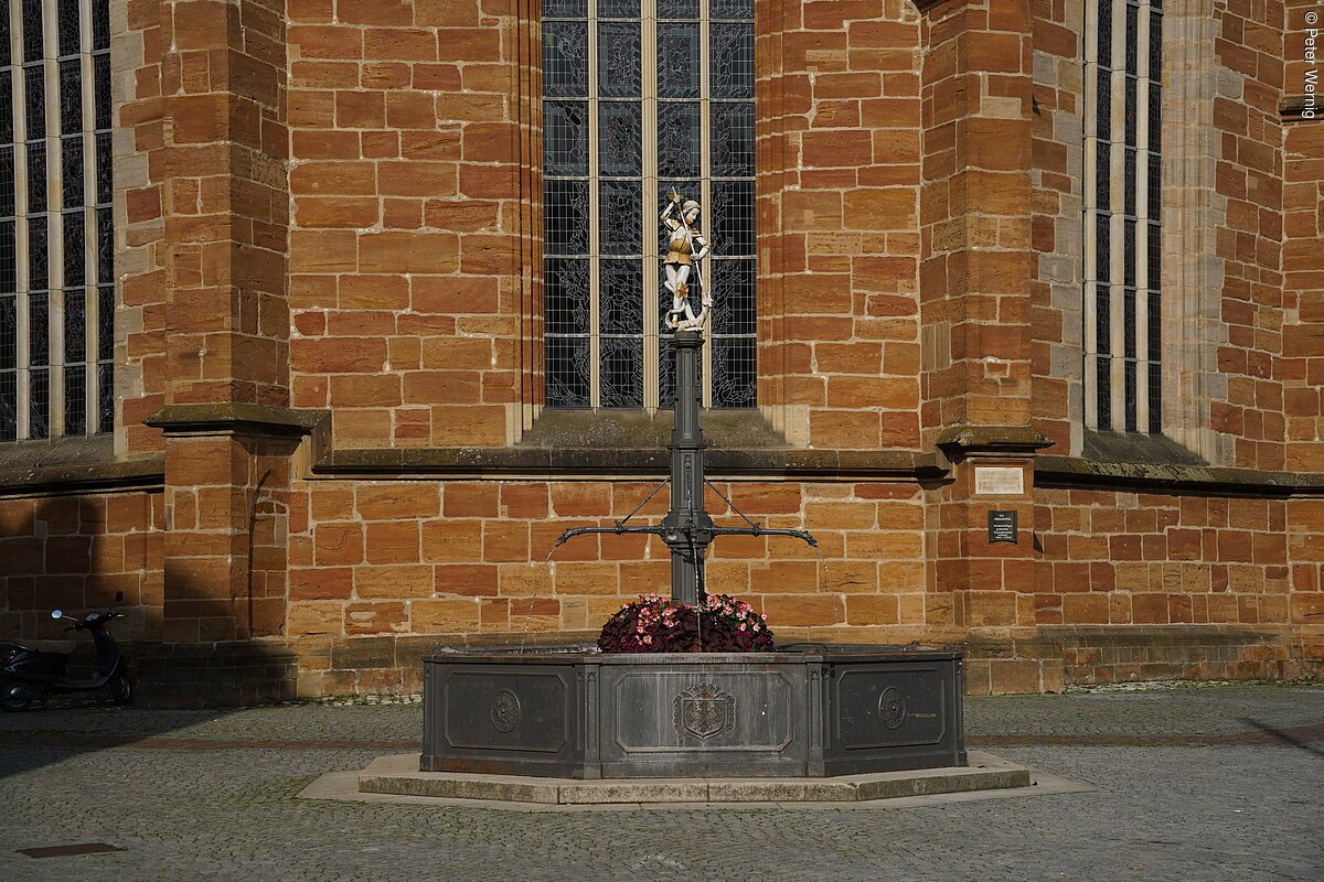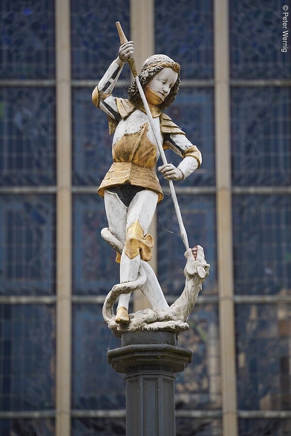 Im Herzen der Altstadt, auf dem Weg zwischen Rathaus und Münster, begegnet man dem St.-Georgs-Brunnen.