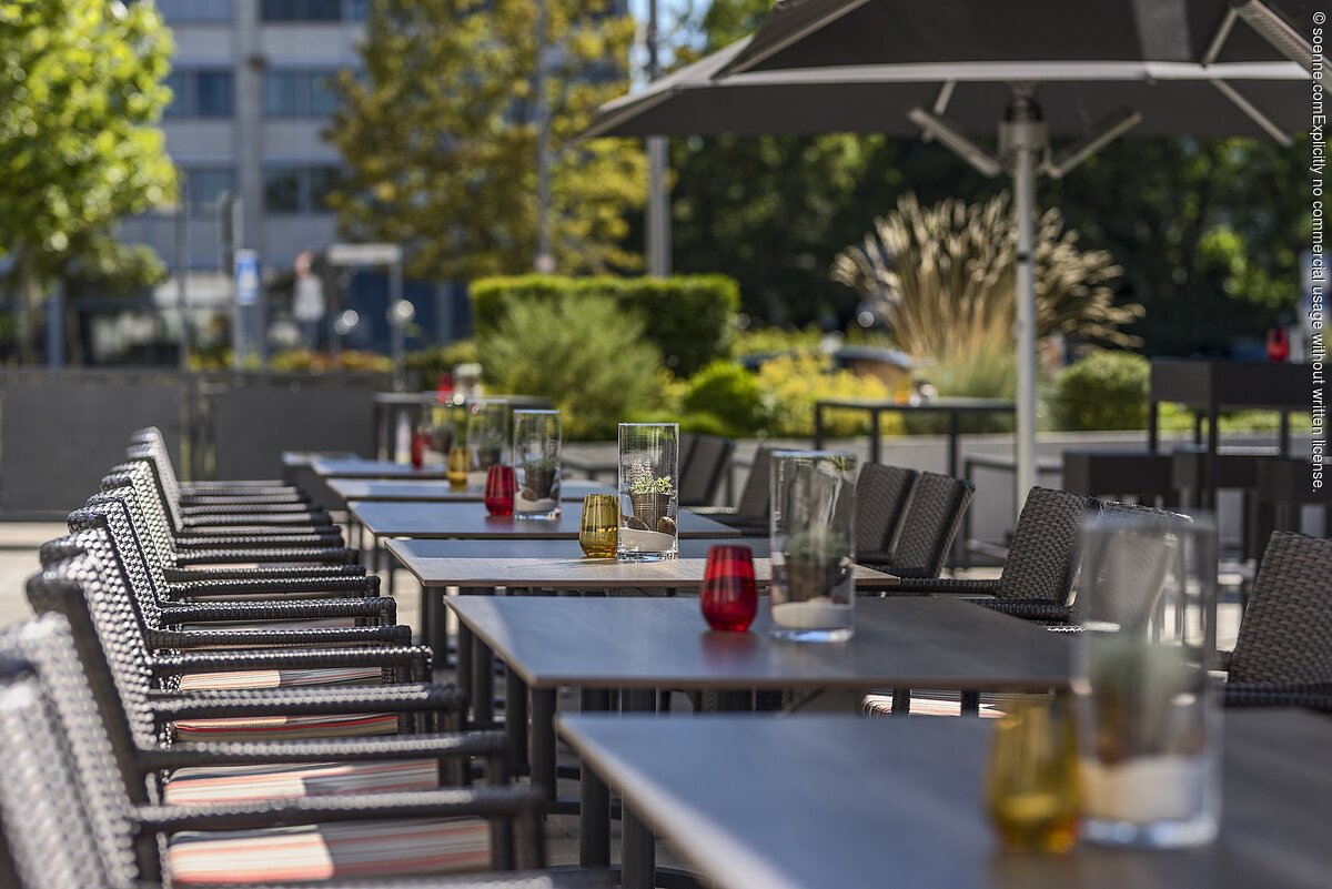 Ein Restaurant mit Außenterrasse und eine Lounge-Bar sorgen auch in den Pausen für angenehmes Tagungsflair. Das Gastronomie-Konzept besticht durch eine leichte, mediterrane Frischeküche mit saisonal wechselndem Angebot, und natürlich gibt es für die Verpflegung der Tagungsgäste auch attraktive Pauschalen. Für die Unterbringung der Gäste stehen 105 klimatisierte und moderne Zimmereinheiten in verschiedenen Größen mit besonderer Zimmerausstattung zur Verfügung, davon 89 Standardzimmer (inklusive zwei Behindertenzimmer), 15 Superior-Zimmer und eine Suite. Parken kann man (kostenplichtig) in der hoteleigenen Tiefgarage mit einer großzügigen Anzahl von Stellplätzen. Und zum Entspannen nach dem Arbeitstag lädt ein moderner Fitnessbereich mit Sauna und eigener Dachterrasse die Hotelgäste ein.