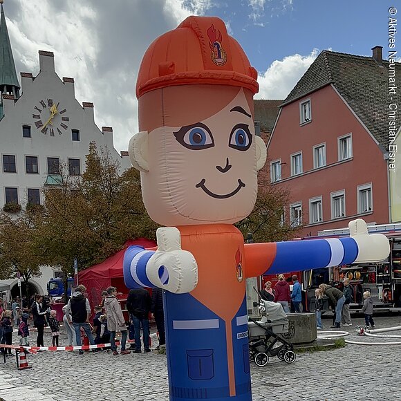 Auch nördlich des Rathauses ging es weiter. Eine große XXL-Hüpfburg war am Unteren Markt zu finden, ganz in der Nähe war die Bundeswehr, die mit mehreren Fahrzeugen vor Ort war. Diese konnten ausführlich begutachtet und teilweise ausprobiert werden. Die VEDES Kinderwelt bot Bastelmöglichkeiten, Bau-Simulatoren der Firma Max Bögl konnten ausprobiert werden, die Feuerwehr Neumarkt präsentierte sich und Mortimer English Club baute eine Rollenrutsche auf. Auch mehrere Sportvereine wie die Fibalon Baskets, die Handball Vampires, und die American Footballer der Neumarkt Wolves luden zum Mitmachen ein.